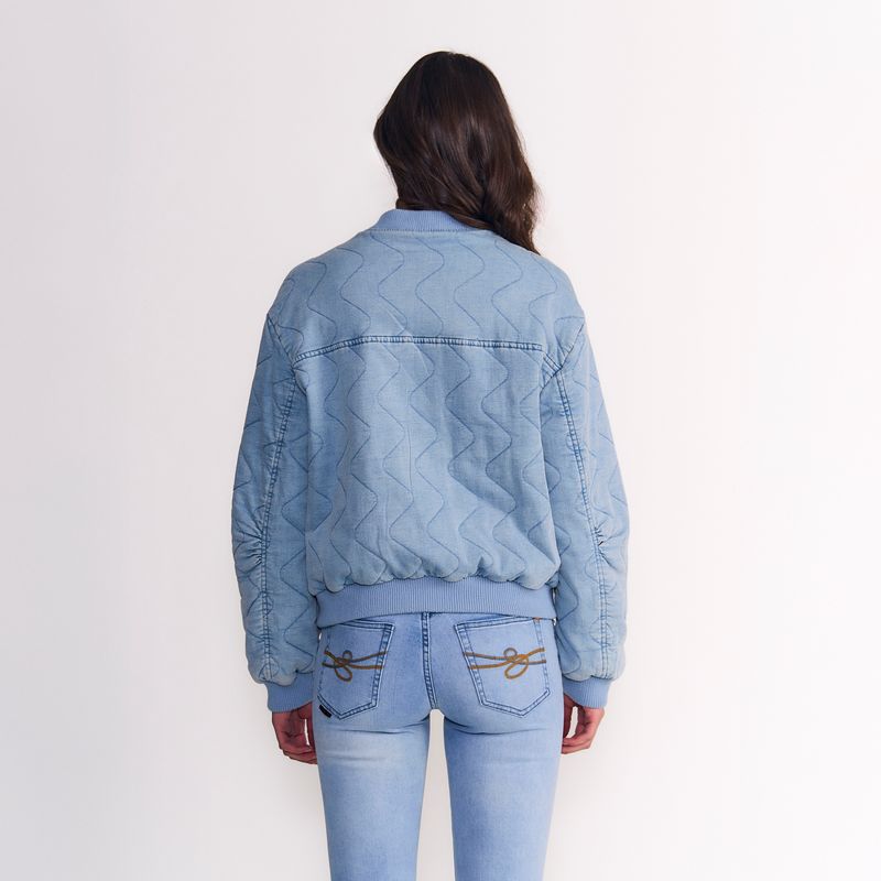 Una reinterpretación femenina del clásico bomber. Con estructura limpia y detalles sutiles, esta prenda combina la fuerza de una silueta tradicional con la suavidad del tejido moderno. Atemporal y versátil, es ideal para equilibrar lo casual con lo sofisticado, llevando siempre una actitud segura y serena.